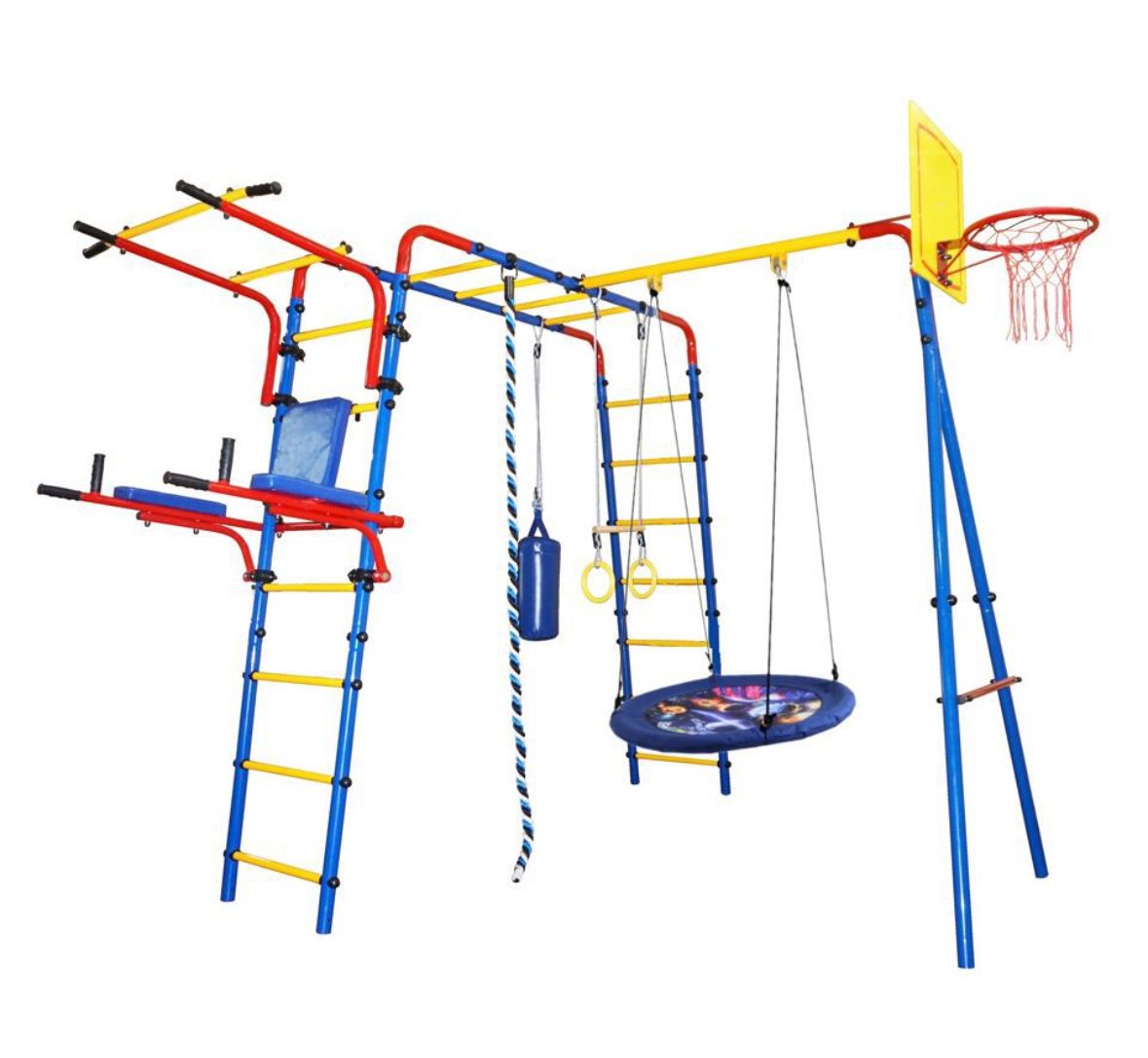 Функциональность комплекса обеспечивает множество дополнительных игровых элементов. В комплект входят: баскетбольный щит, груша, брусья, канат, кольца с перекладиной, гимнастическая лестница, рукоход, подвижный турник. Возможность регулировать турник по высоте позволяет подобрать комфортный уровень для ребенка. Комплект можно дополнить сеткой лазом и качелями разных видов. Множество элементов создают условия для всестороннего развития ребенка, занятия на комплексе развивают силу, ловкость, выносливость, координацию и моторику.