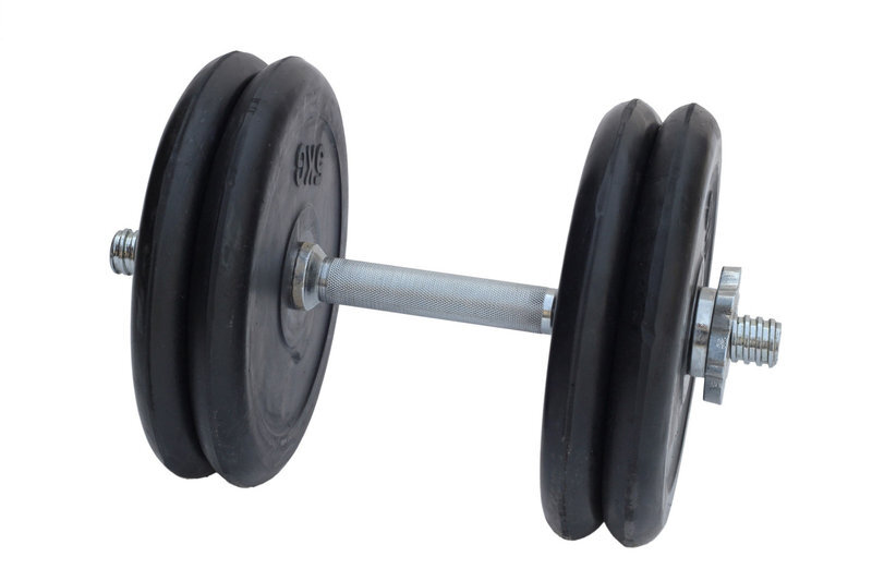 Разборные обрезиненные гантели по 21.5 кг каждая или как их иногда называют гантели 22.5 кг. Отличный вес для тех, кто планирует серьезно заниматься спортом. Веса этих гантелей достаточно для выполнения практически любых возможных упражнений. Можно собрать из разных дисков. На выбор несколько комплектаций: