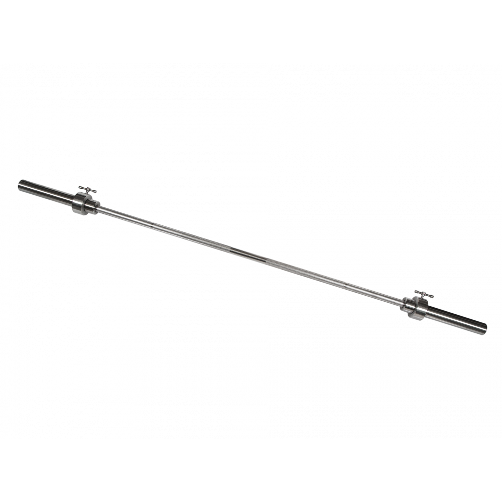 • Уникальное сочетание стиля, надежности и безопасности! • Стальной гриф марки 45 с блестящим покрытием из никеля и хрома – элегантность и долговечность в каждой детали! • Втулка гладкая, плавно вращающаяся для комфортного использования. • Замок с инновационным ломающимся стопором обеспечивает надежность фиксации. • Идеально подходит для нагрузок до 180 кг – ваша уверенность в каждом движении!