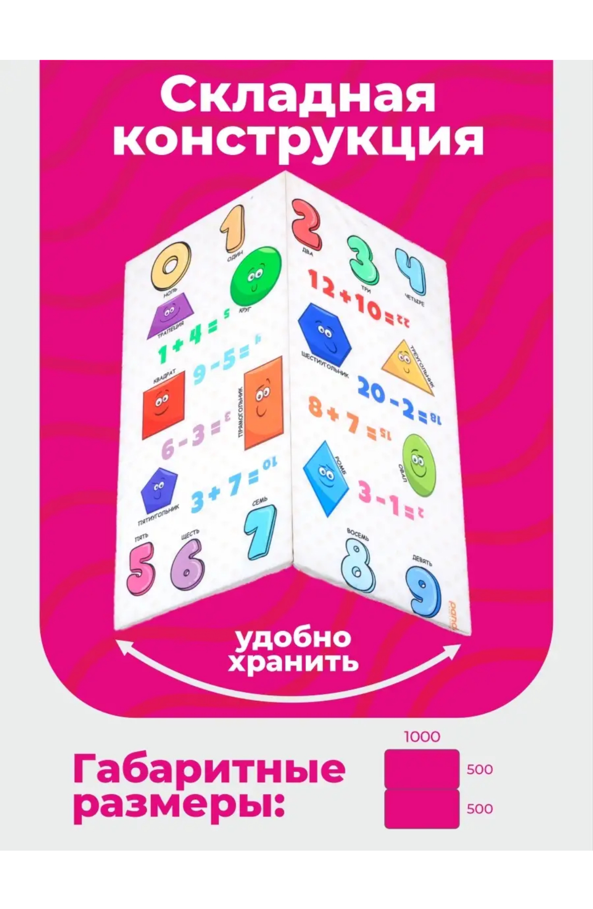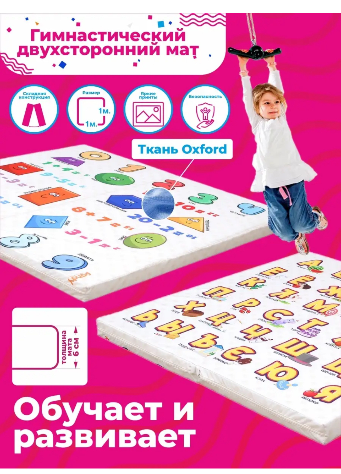 Гимнастический мат складной для детей - Алфавит (на обратной стороне находится изображение с цифрами)