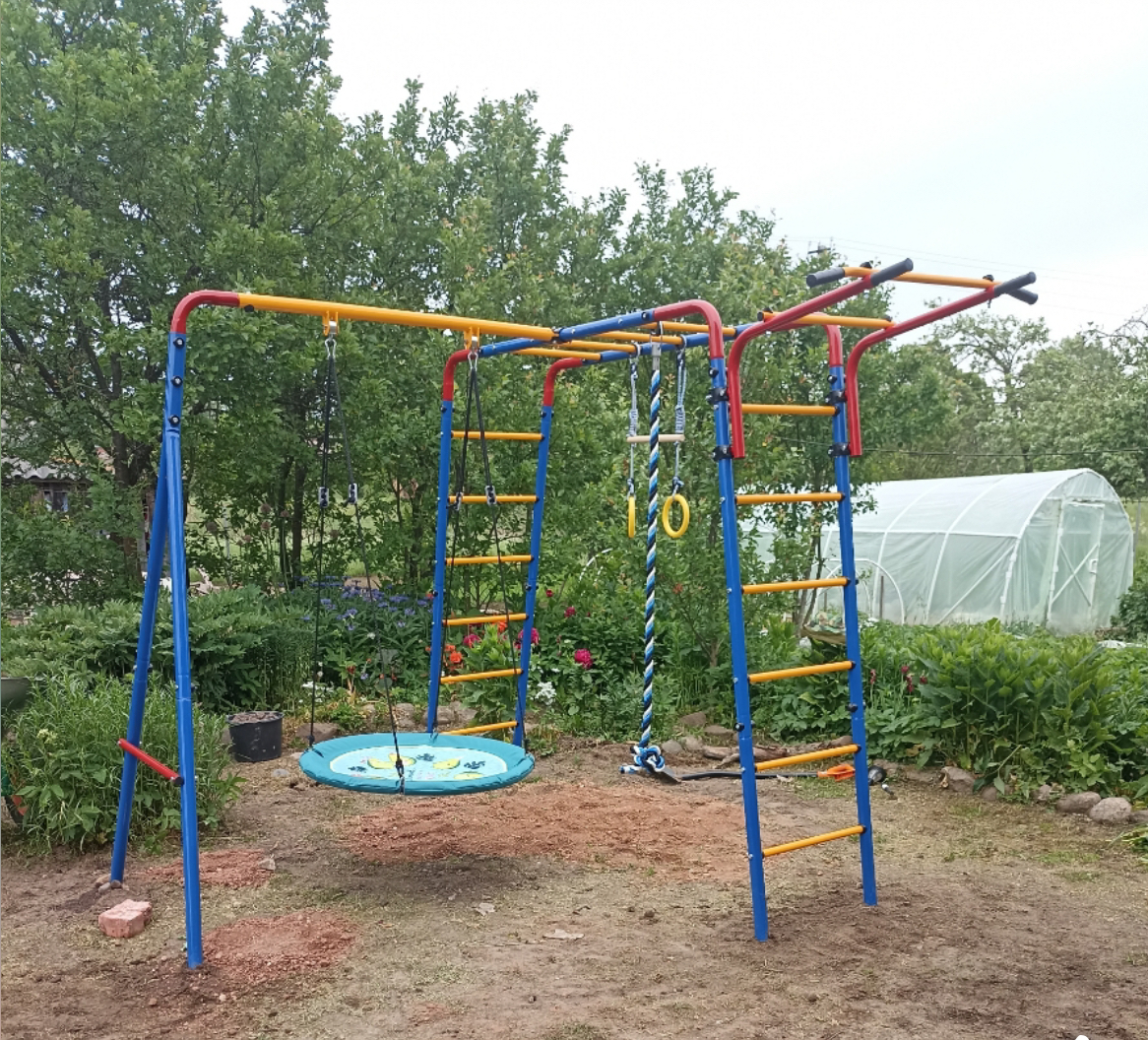 Допустимая нагрузка: до 120 кг на турник и рукоход, до 100 кг на навесное оборудование: