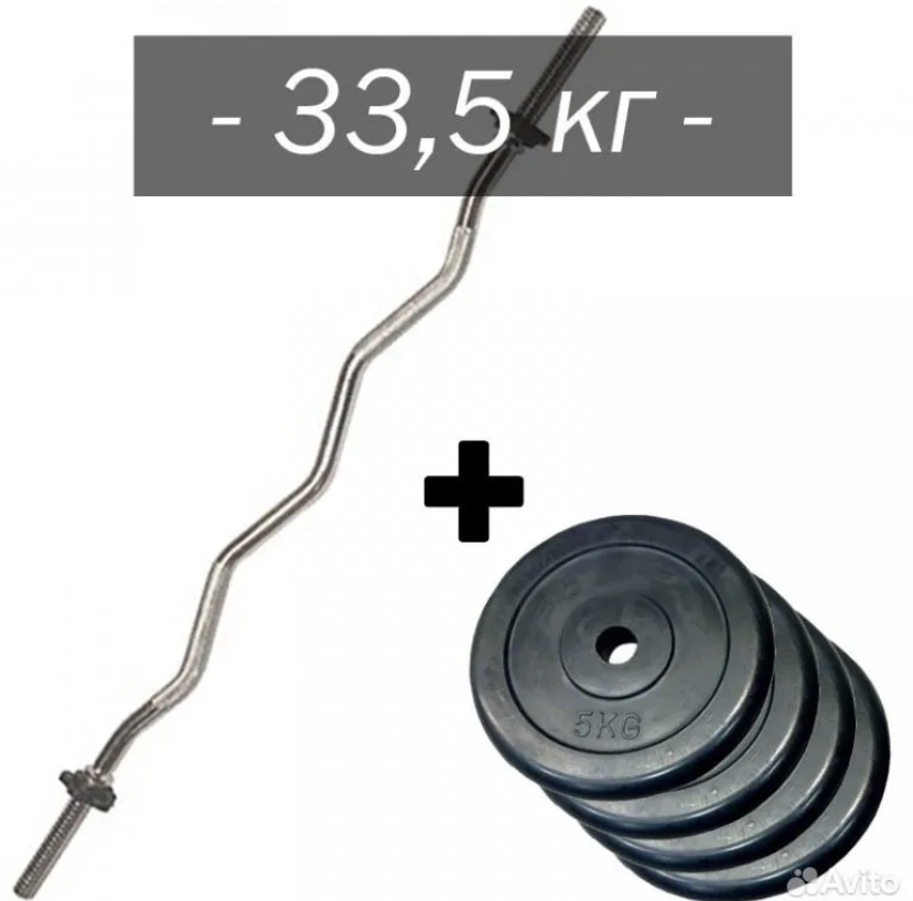 | Состав: | 4 диска [5кг], 2 диска [2,5кг], 2 диска [1,25кг], гриф W слабоизогнутый |